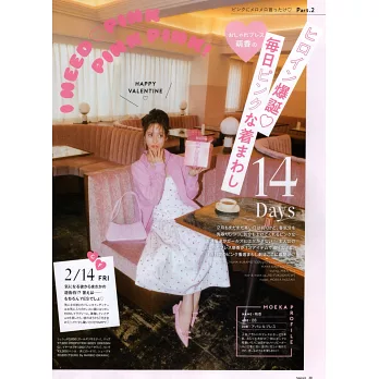 2月份的天氣還很冷,可是時尚心情已經是春天氣氛,乾脆就以充滿春意的粉紅單品來搶先穿出季節魅力。介紹13件單品的14天穿搭實例,用粉紅色帶來亮眼可愛的潮流魅力。