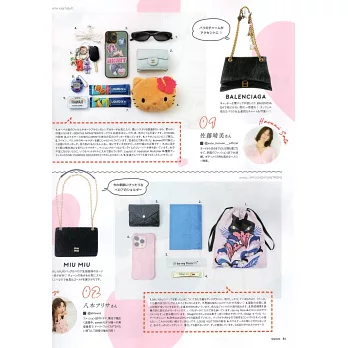 SWEET模特兒們平常使用什麼包包,包包裡又裝了哪些東西呢?佐藤晴美、八木亞里沙、谷MARIA、池田美優、emma、吉田朱里…等人氣美女接受調查,公開自己的隨身物品。