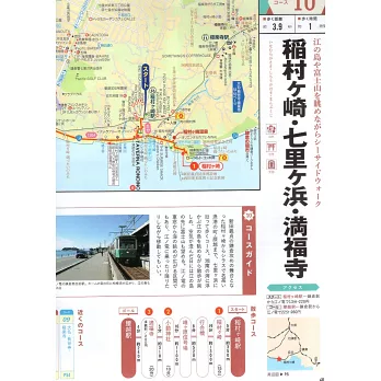 這條路線從新田義貞鎌倉攻戰的舞台稻村崎出發,盡情欣賞漂浮在湘南大海上的江之島,天氣晴朗時,甚至能遠眺江之島後方的富士山。