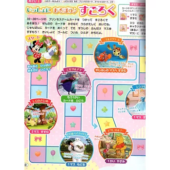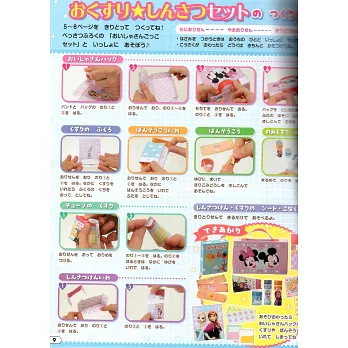 本誌內容當中將收錄多達133張可撕式人物貼紙,讓讀者們可以跟家中心愛的孩子們一起把角色貼紙貼在喜歡的場景上,享受貼紙遊戲書的樂趣,此外,還包括圖片配對、角色搜尋等六款遊戲,而剪紙手藝則讓扮演醫師變得更加有趣!當中包含藥品與檢查用品等17張紙藝套件,其他有趣的內容還包括迪士尼故事劇場「小熊維尼的刺激捉迷藏」,以及適合炎熱的季節!迪士尼人物風格的「高髮髻」造型等推薦給喜愛迪士尼角色的讀者們動手製作益智遊戲的品項與享受親子遊玩的美好時光!
