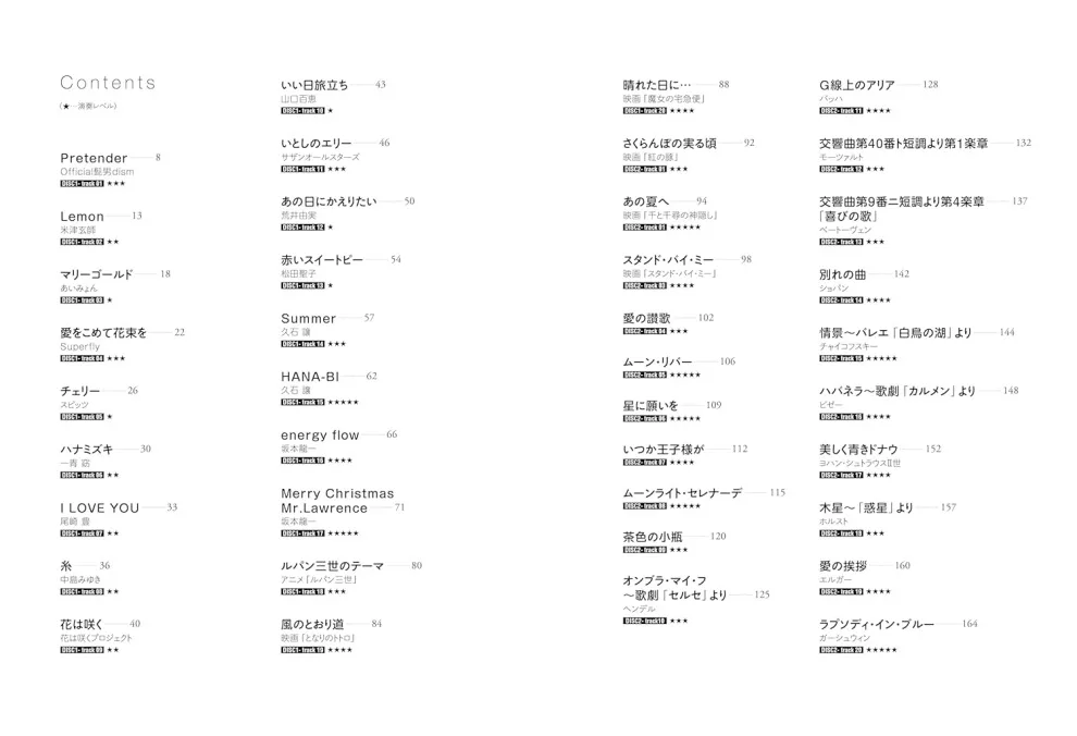 付属のCDには模範演奏を全曲分収録。練習のサポートや選曲の参考に、便利に活用いただけます。