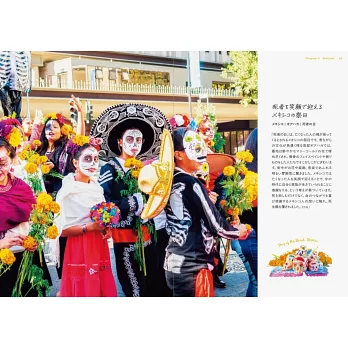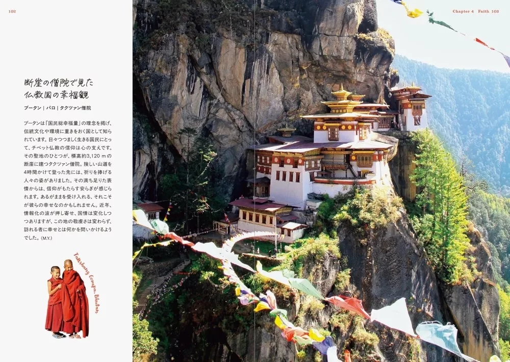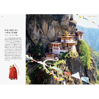 當人生遇到瓶頸、感覺不順遂的時候,當生活有了餘裕、可以說走就走的時候,不妨替自己安排一趟從未去過的旅程,重新體感這個世界遠比你想像的更遼闊。無數的獨特文化、不一樣的生活習慣,透過世界45個國家探訪之旅手冊的帶領,從街道、生活、祭典、信仰、藝術&建築、自然,六大主題,精選出74個令人印象深刻的世界景色,每翻一頁畫面,期許各位能開拓視野,揮別習以為常的理所當然,遇見新的人生價值觀。