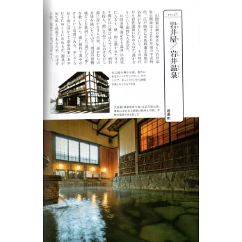 開湯於1200年前平安時代的岩井溫泉,在江戶時代就有鳥取藩主專用的浴舍。將毛巾放在頭上、再用勺子舀熱水從頭淋下的獨特習俗,從當時一直流傳到現在。岩井屋鄰近共同湯,是創業150 年三層樓的老字號木造旅館,最著名的是「源泉長壽之湯」大浴場。