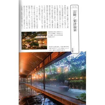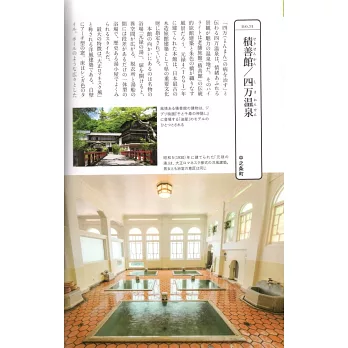 相傳「可以治四萬種病」的四萬溫泉,是景觀充滿懷舊氛圍的溫泉地。其中最大亮點,就在於老舖溫泉旅館「積善館」的傳統建築與朱色橋樑交織的風景。建於1691年的本館,為日本最古老的木造旅館建築,已被指定為群馬縣的重要文化財。
