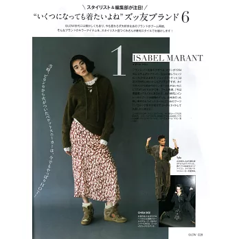 結合波希米亞與搖滾風格,由法國設計師ISABEL MARANT於1994年創立的同名時裝品牌,以ISABEL MARANT為首,本單元特別要請到造型師與本誌編輯部來介紹不管到幾歲都喜歡的時裝品牌。