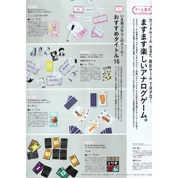 不讓電玩遊戲專美於前,近年來,桌上遊戲也在不斷進化推出許多有趣的遊戲,從適合初學者的卡片遊戲到搭配APP的猜歌遊戲,本單元特別要介紹目前最受矚目的桌上遊戲。