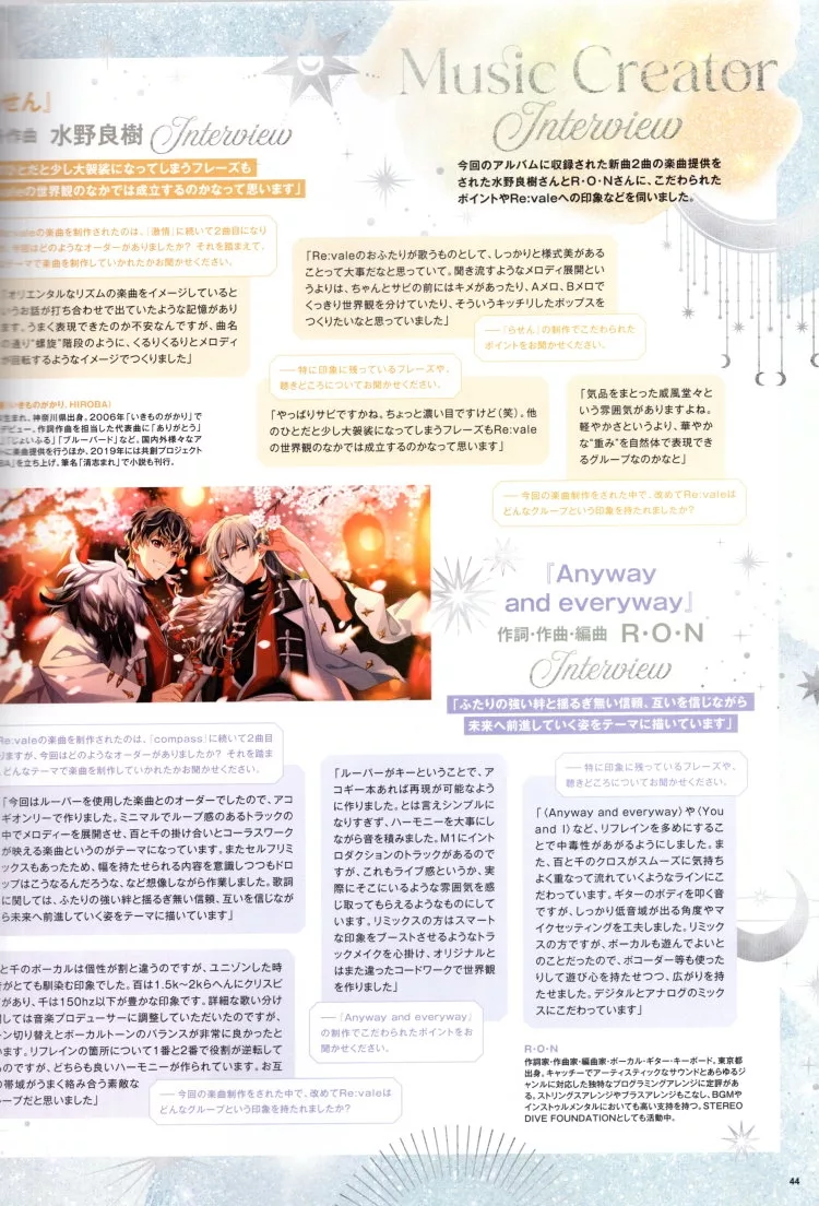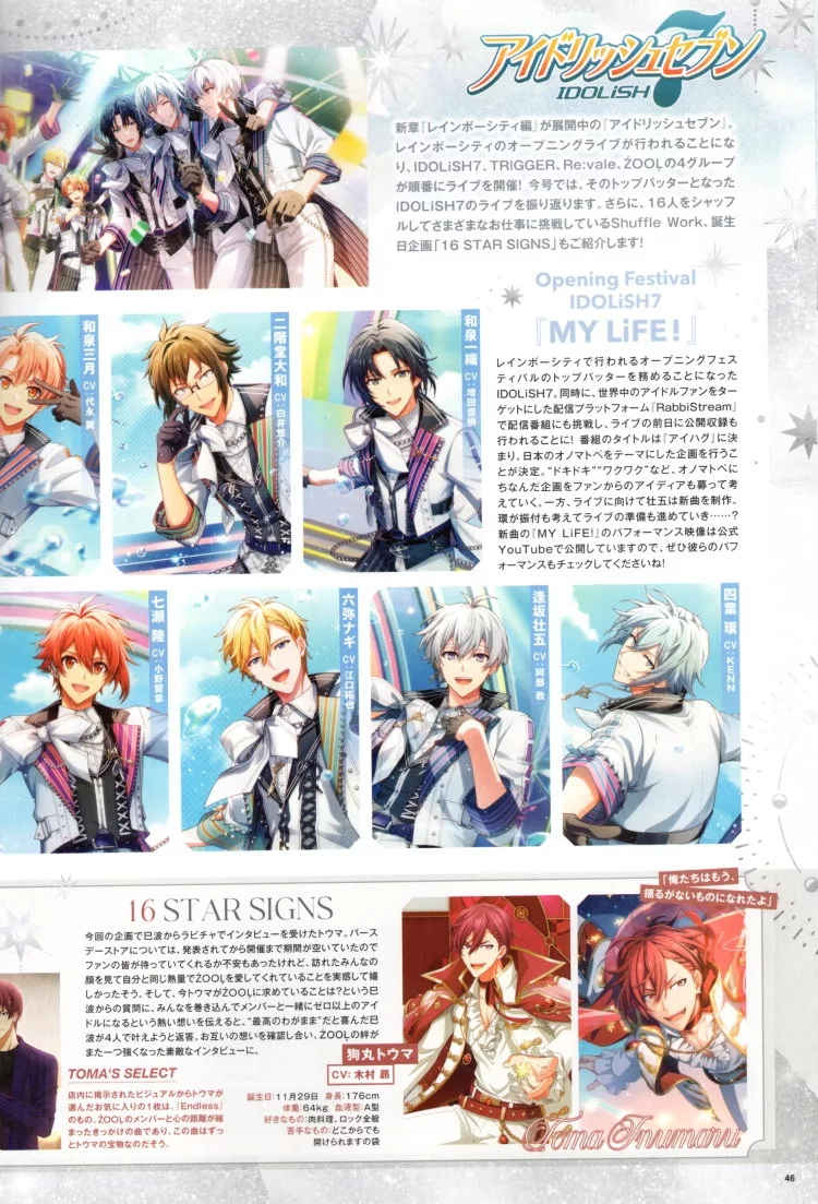 內容包含了聲優、月蝕會議、原作&編導等的訪談,並穿插許多珍貴的製作花絮。《IDOLiSH7》的「百」&「千」雙人組合「Re:vale」發行了第3張專輯「Re:thm」。這張色彩繽紛的專輯,是以二人在經歷重重考驗之後的重新出發,來作為核心的創作概念,並藉由二首全新的歌曲來展現出Re:vale現今的獨特魅力。本期將透過二人的專訪來瞭解專輯中的歌曲,並同時回顧《IDOLiSH7》10年來的點點滴滴。