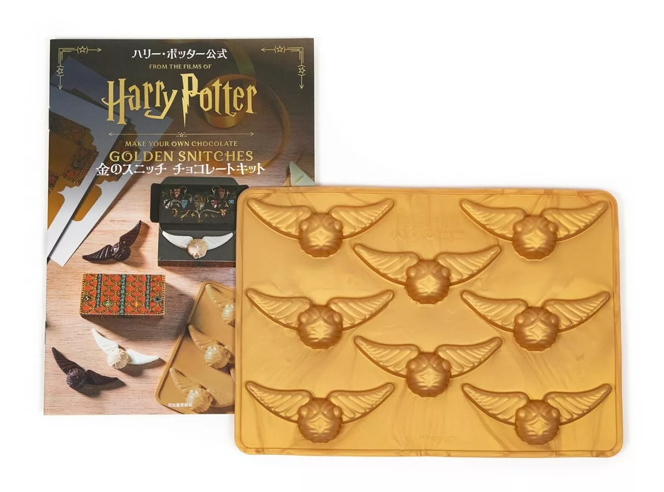 奇幻小說「哈利波特:消失的魔法石」在1997年出版,英國作家J‧K‧羅琳筆下的魔法世界迅速風靡全球,系列小說、根據小說翻拍的系列真人電影都相當成功。以虛構運動魁地奇的重要道具,故事中也扮演關鍵角色的金探子為靈感,在此帶來一款金探子造型的巧克力模具,同時準備了12頁的製作教學,協助大家做出金探子造型的美味巧克力。再追加一本巧克力蛙的A5筆記本,藍色為主、金色為輔的封面大方又帥氣,全彩的橫線內頁點綴各種點心的可愛插圖,書籤繩的尾端還加上巧克力蛙造型吊飾,絕對值得把握。