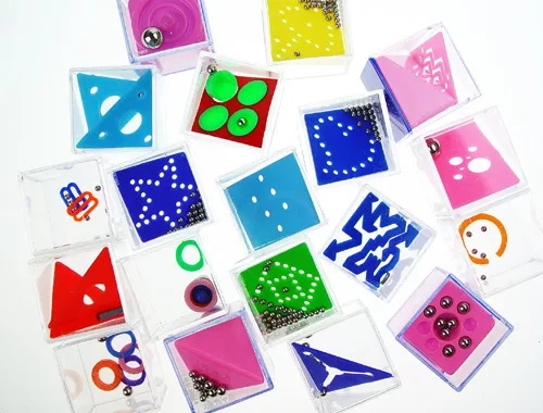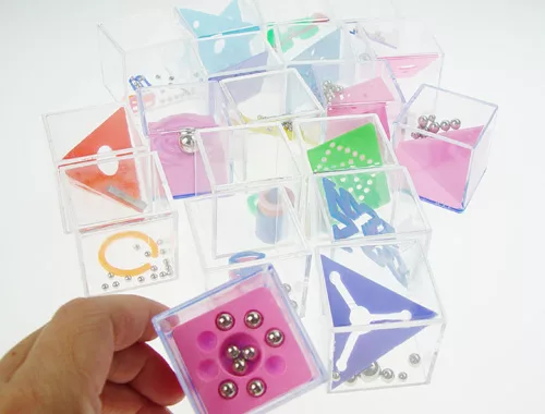 遊戲盒內俱備與固定孔相對數量,大小的鋼珠,將流動的鋼珠固定於孔內,就能完成遊戲喔!