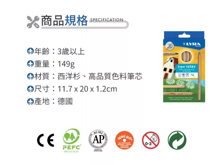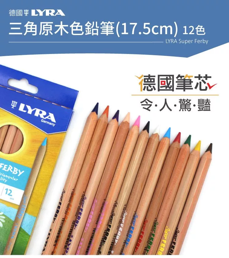 【德國LYRA】三角原木色鉛筆(17.5cm)12色