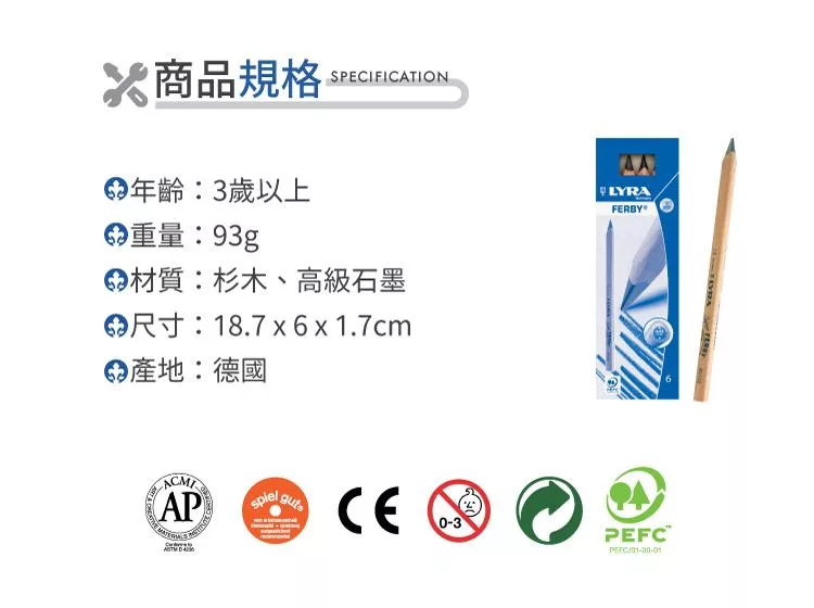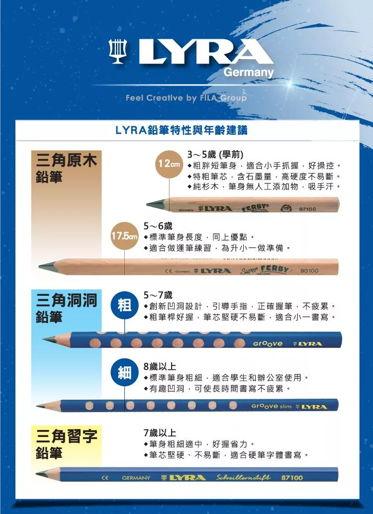 【德國LYRA】兒童三角原木鉛筆(17.5cm)6入