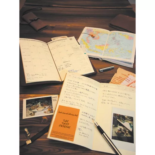 MIDORI的Traveler’s Notebook每一本都是在泰國清邁手工製作,使用越久皮革的質感越好。內頁更換簡單方便。不僅可以拿來記錄旅行的點滴,也適合用於平日生活及工作的紀錄。