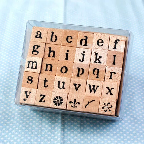 首次使用印章前,請先將印章背膠以及已裁切好的對應貼紙、橡皮,分別貼在木頭印章的兩端。