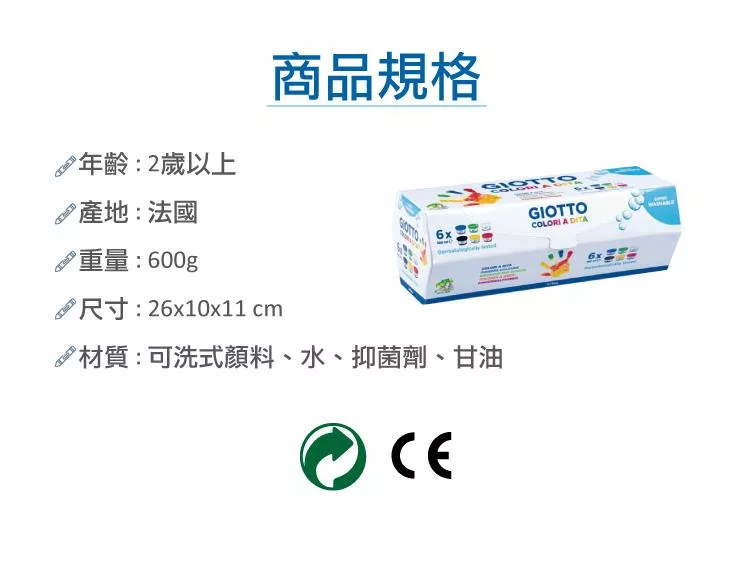 【義大利GIOTTO】幼兒安全手指膏(6色) 100ml