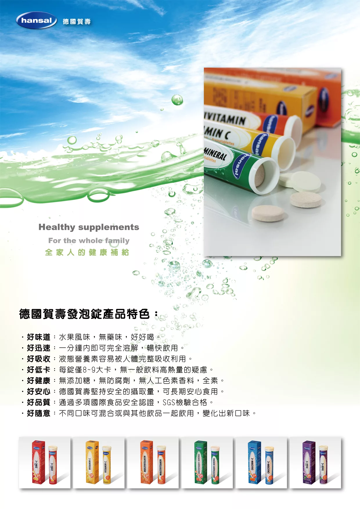 德國賀壽維他命C發泡錠每一錠含240毫克的維生素C,劑量相對安全,適合長期天天飲用。 維生素C可促進膠原蛋白的形成,有助於傷口癒合。促進鐵的吸收。具抗氧化作用。可補充因各種因素造成的維生素C流失。一天一杯,讓您輕鬆美麗,也讓身體多一層保護!