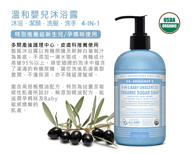 名稱:Dr.Bronner's 布朗博士 溫和嬰兒Shikakai沐浴露 12oz/356ml