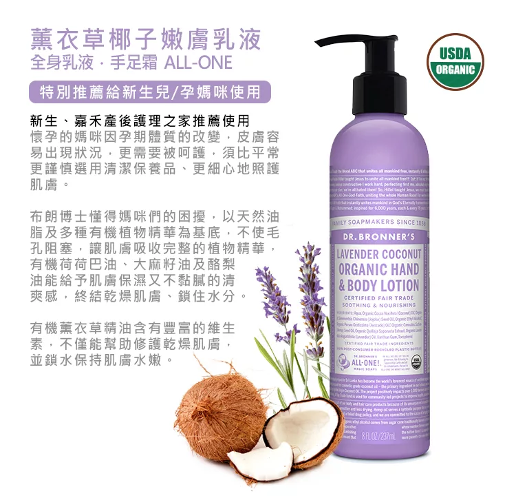 布朗博士 薰衣草椰子嫩膚乳8oz/237ml