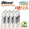 【iNeno】低自放4號鎳氫充電電池1200mAh(12入 重複使用回充 省錢節能環保)