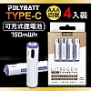 台灣認證 新型Type-C充電孔 750mWh USB可充式鋰離子4號AAA充電電池(一卡4入裝)