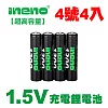 【ineno】4號/AAA 恆壓可充式 1.5V鋰電池 全新特大能量 1300mWh 4入
