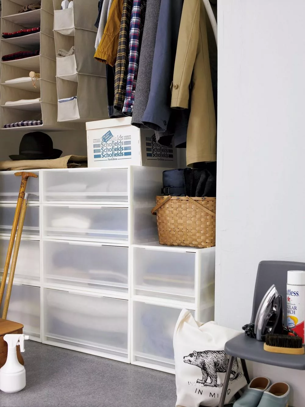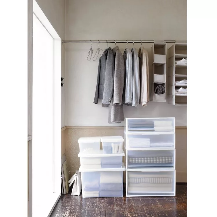 橫式的PP櫥箱,讓衣物可左右並列收納。可加裝輪子(另售)。內寸:寬49×深39.5×高25.5CM。