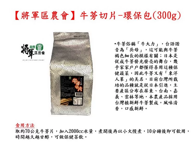 【將軍區農會】牛蒡切片-環保包 300公克/包
