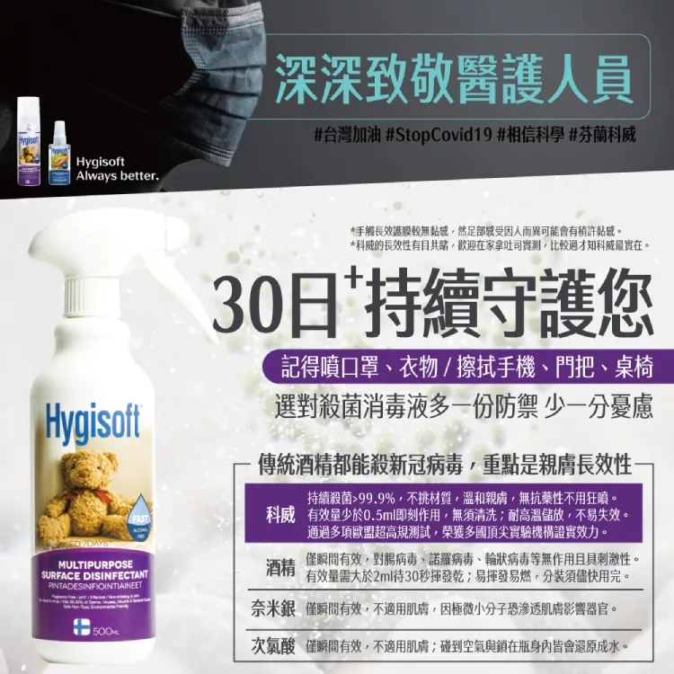 芬蘭Hygisoft科威多用途表面殺菌消毒噴霧 - 500ml
