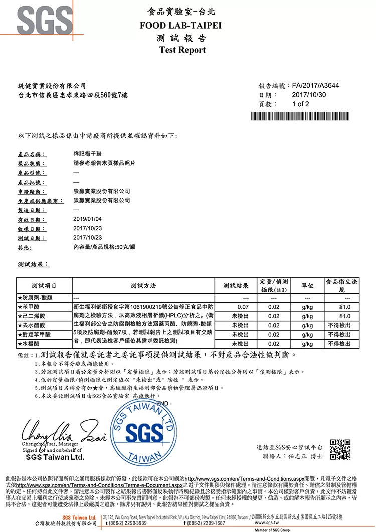 食品注意事項