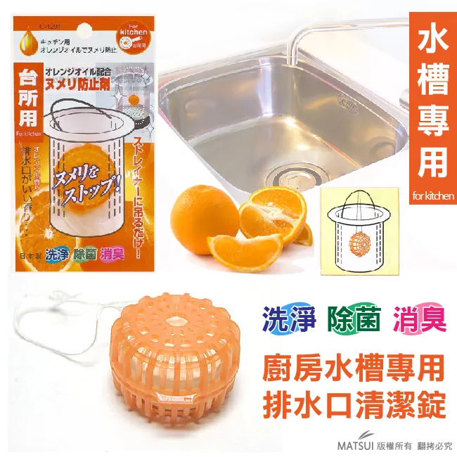 日本製造 廚房排水口專用清潔錠-橘子味
