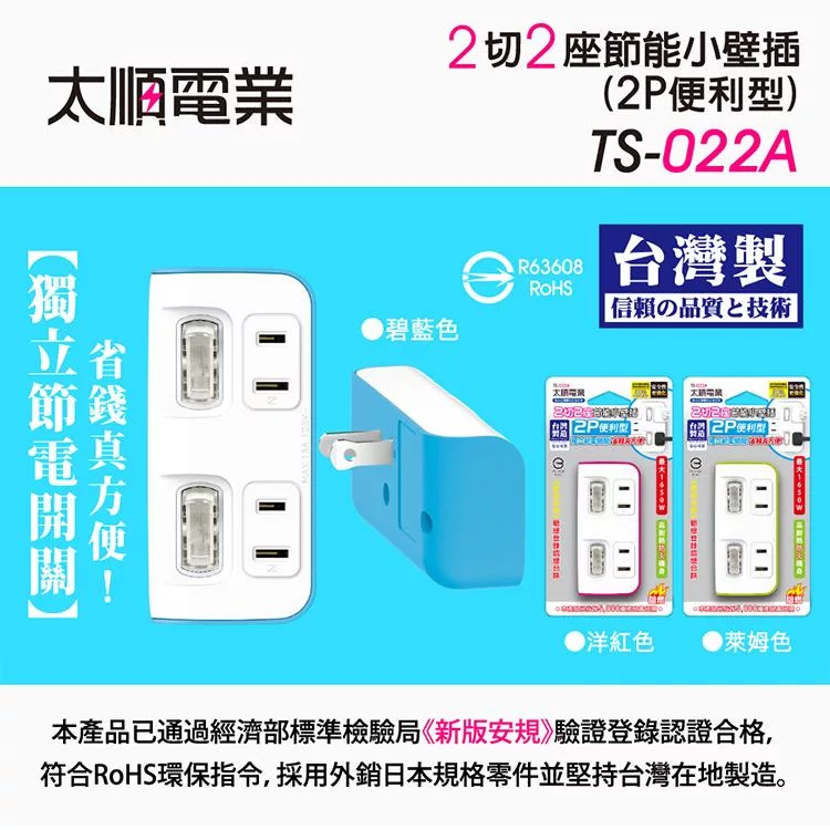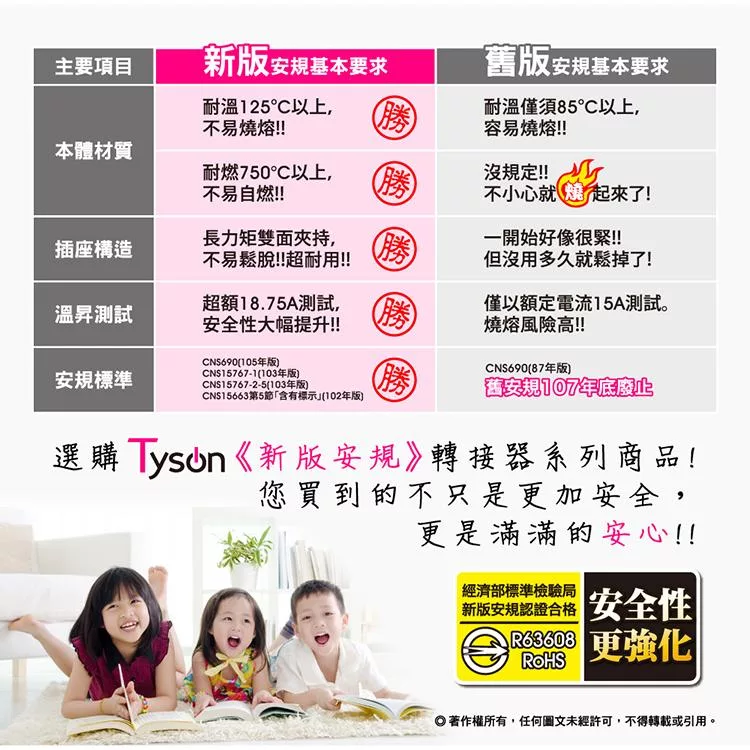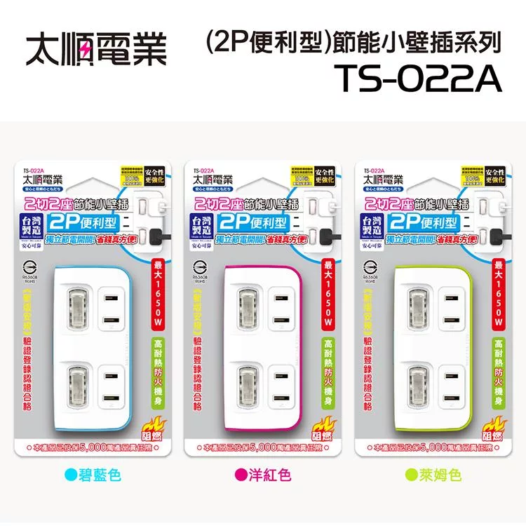 Tyson太順電業 TS-354AS 3孔5切4座延長線(拉環扁插)-1.8米
