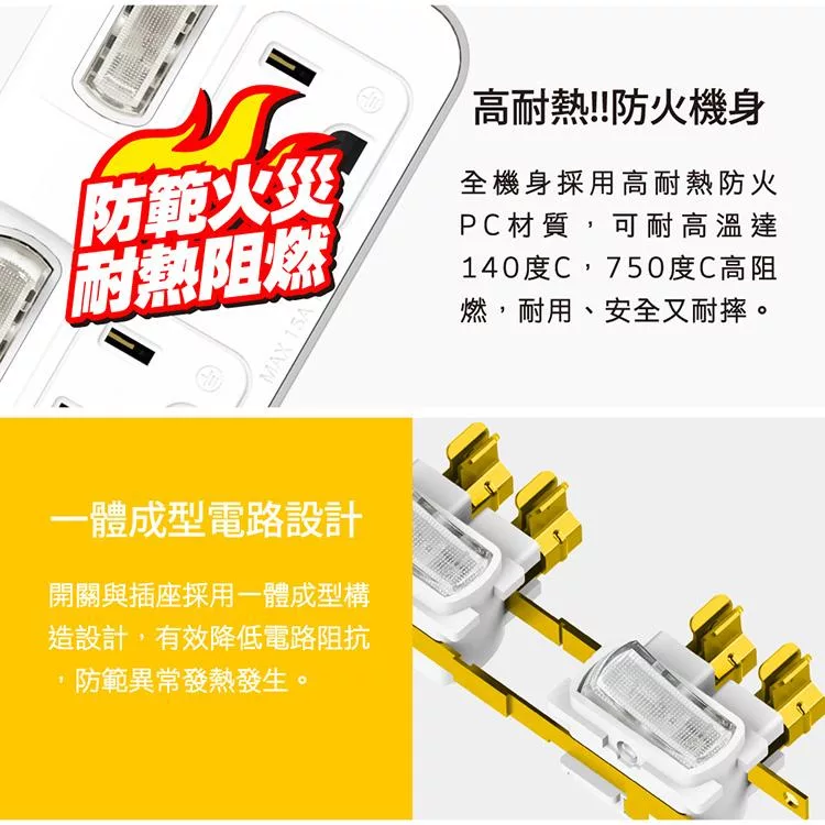 群加 PowerSync 2P 3插高耐熱三面壁插/白色(TC3291)