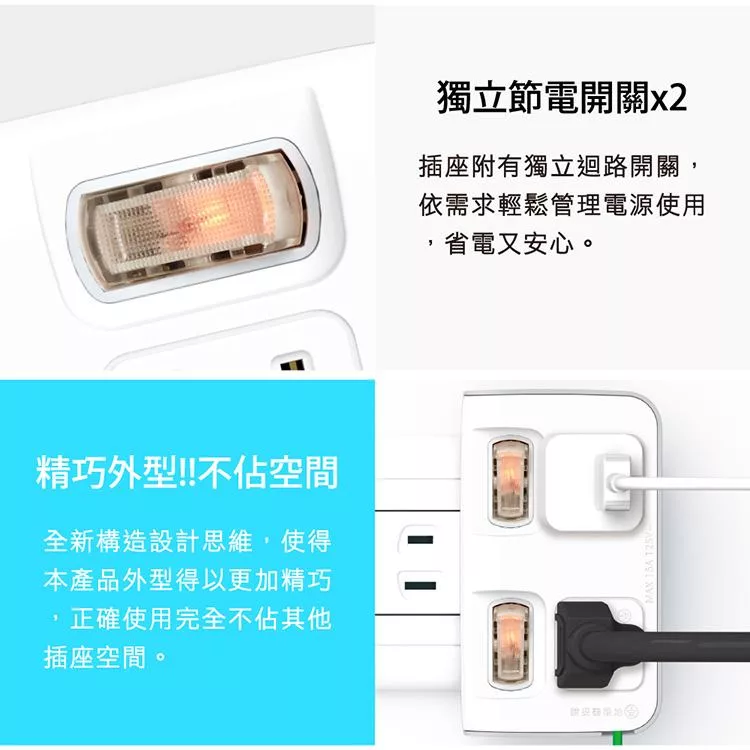 群加 PowerSync 圓弧型3轉2電源轉接頭/白色(TYA391)