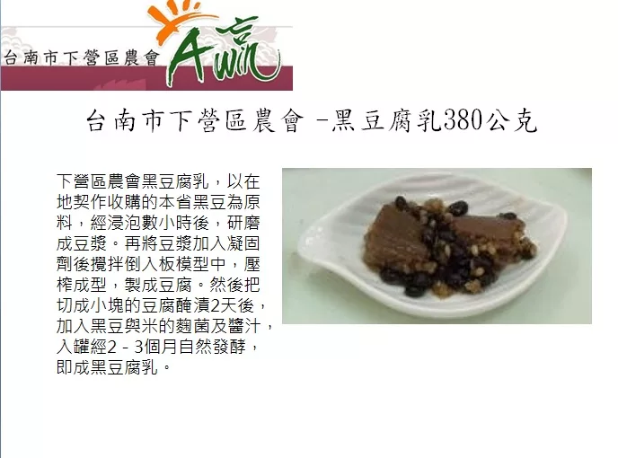• 【製造廠商或國內負責廠商名稱】台南市下營區農會