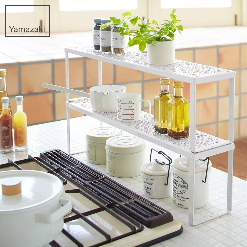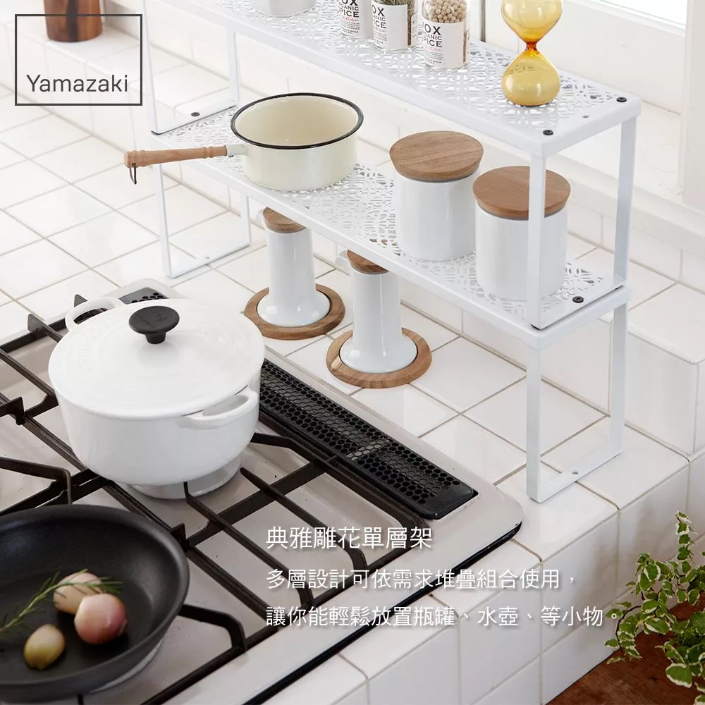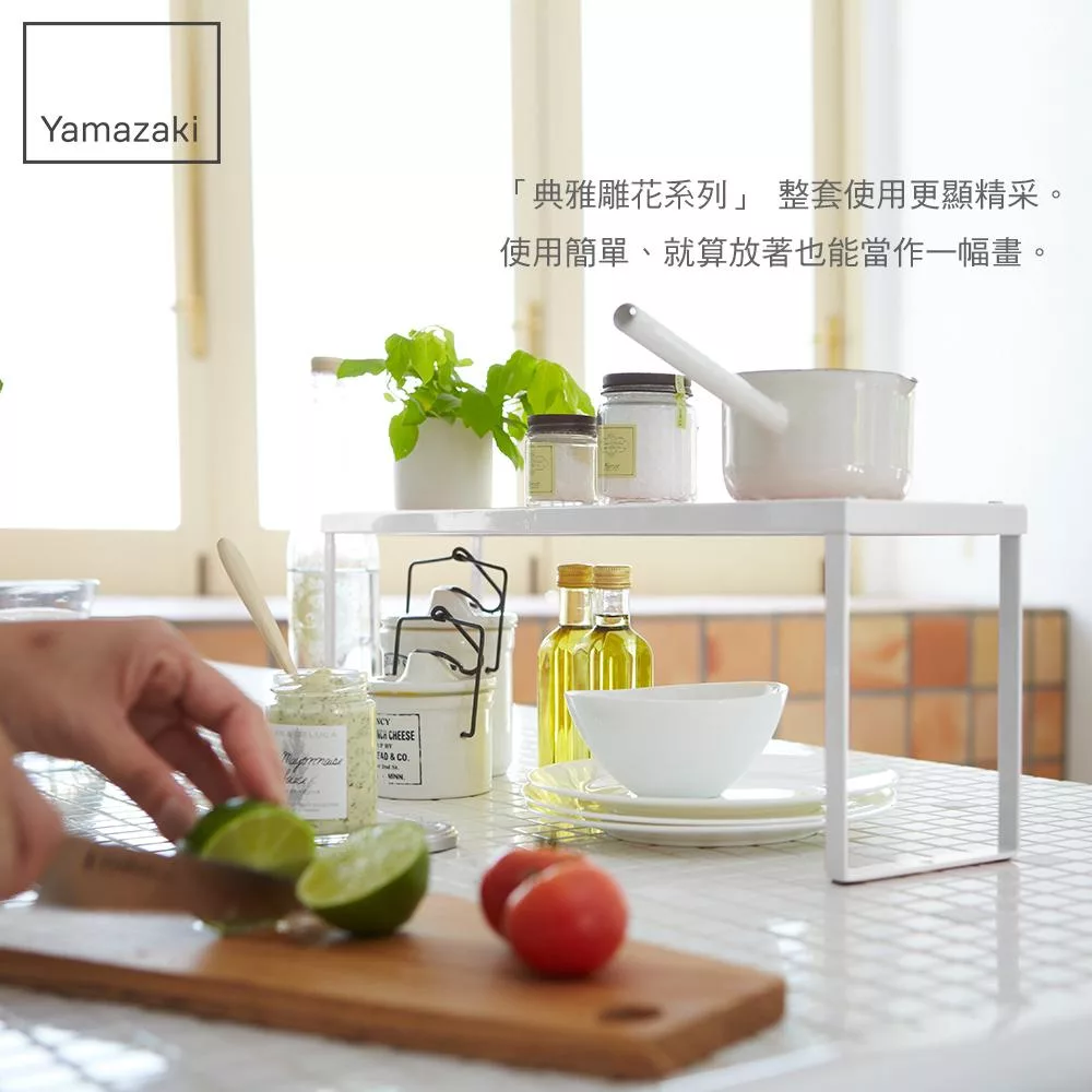 【YAMAZAKI】典雅雕花單層架(白)*日本進口*桌上置物架/廚房收納/收納架/層疊架