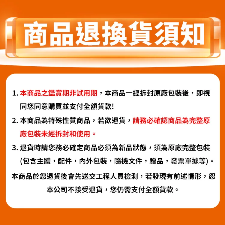 3.產品一經拆封、連線註冊後,均需額外收取退貨整新費用。