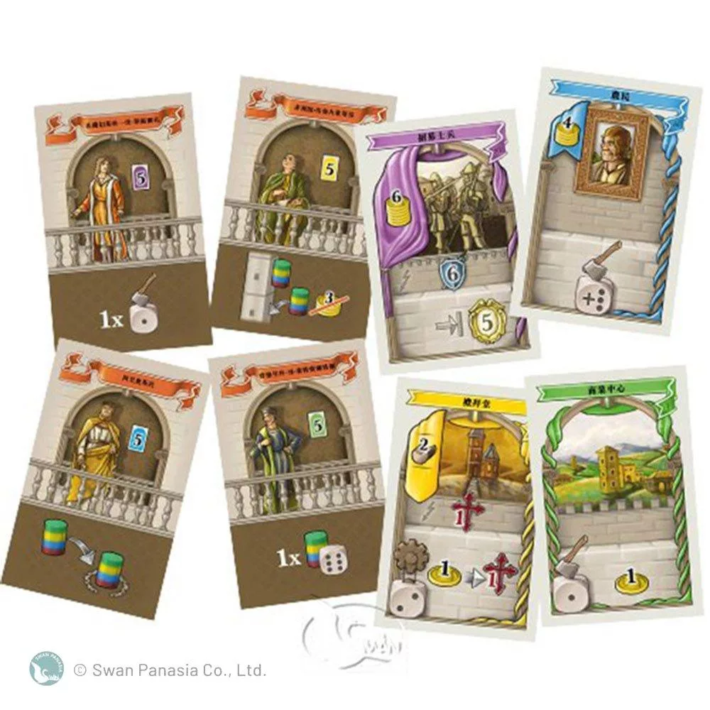 在某些地區,他們會獲得有用的資源;在某些地區則會獲得發展牌,包含征服新領地、興建建築、供養門客或投資公共建設及提升國力;而在另一些地區,可以啟動紙牌的效果。