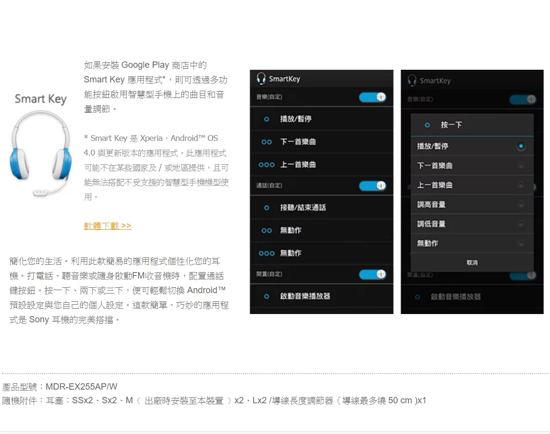 擁有操作簡單的線控麥克風 方便隨時進行網路通話或聆聽音樂 全面支援 Android™、iPhone、Blackberry 系統智慧型手機