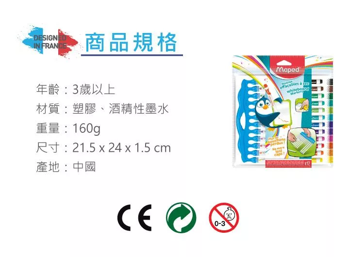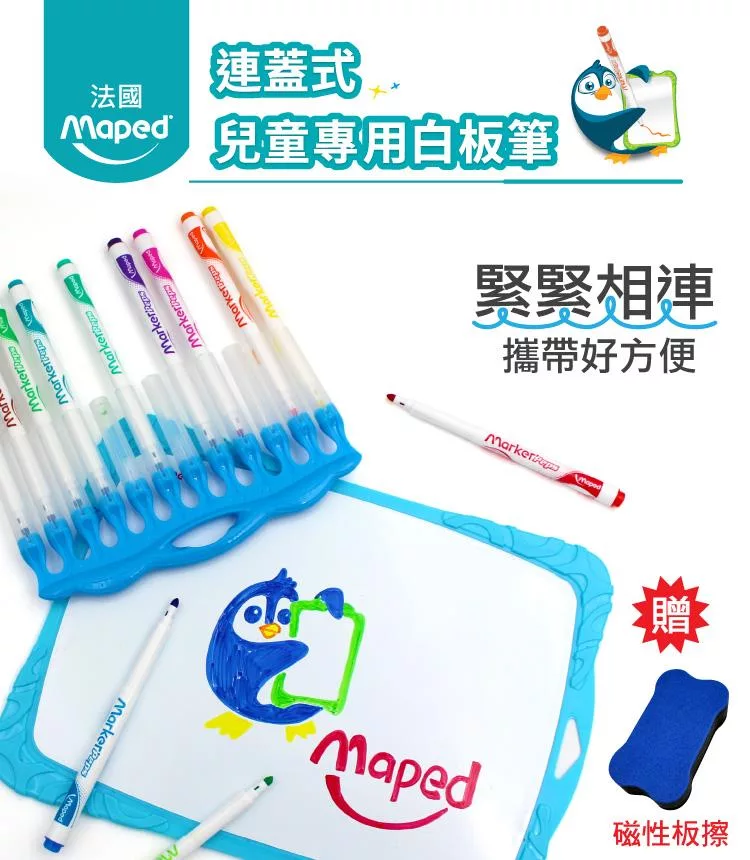 【法國Maped】連蓋式兒童專用白板筆12色