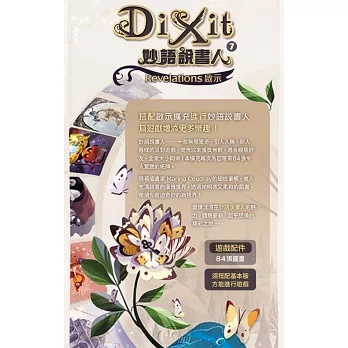 本擴充再次為您帶來84張令人驚艷的紙牌。隨著插畫家 Marina Coudray的細緻筆觸,進入充滿詩意的優雅世界,透過她明亮又柔和的圖畫,帶領你遨遊奇妙的新視界!盡情沈浸在妙語說書人的魅力,體驗嶄新、超乎想像的 精彩之旅……