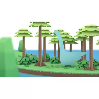 每一個恐龍玩具都附有一組紙質立體模型,可以自己動手為恐龍們拼湊一個場景,玩出大能力。