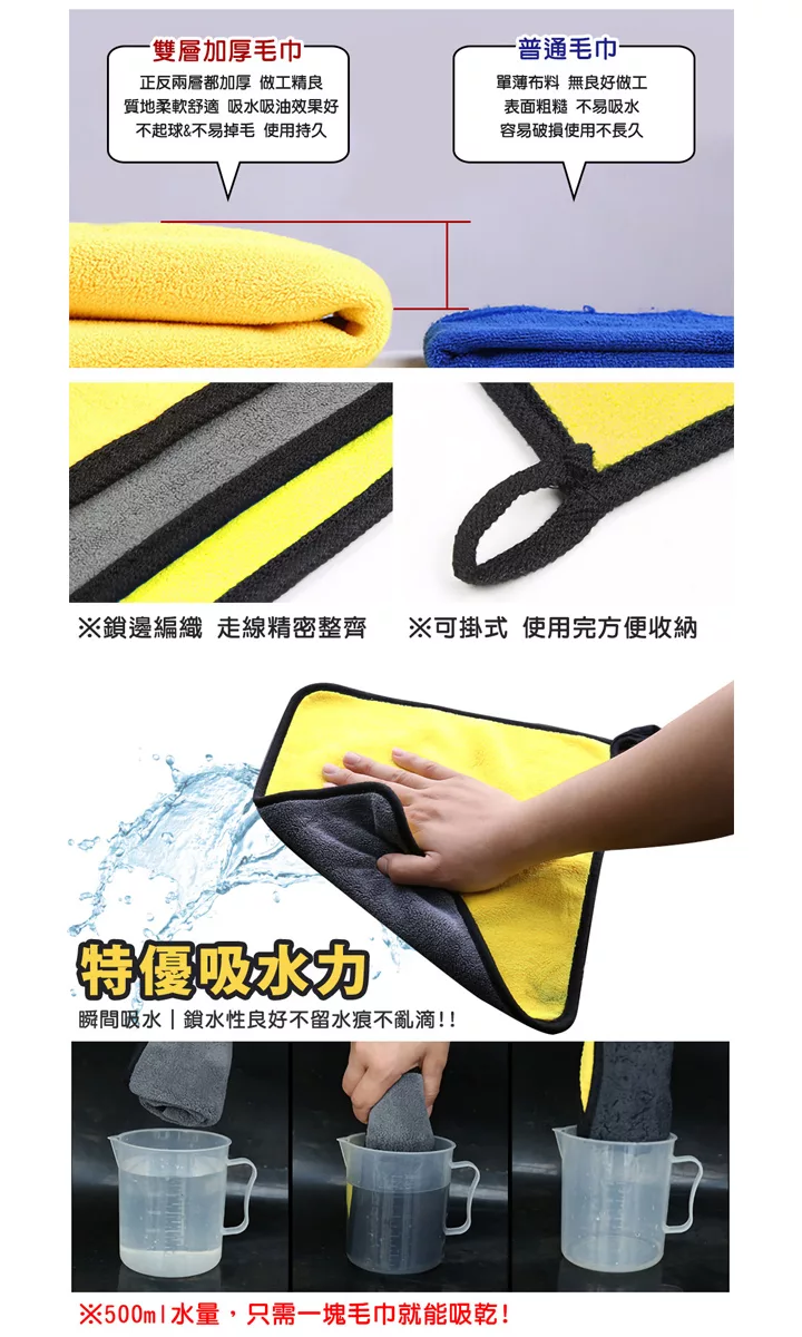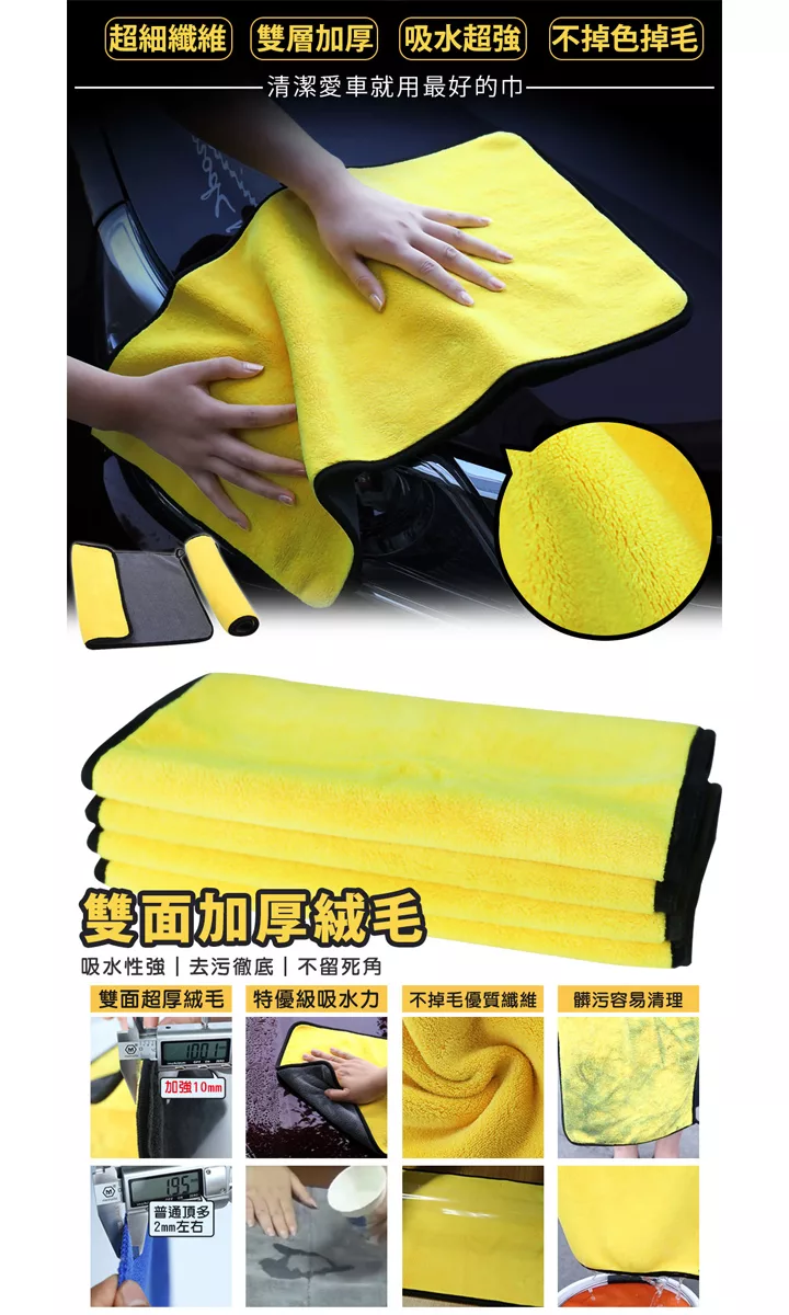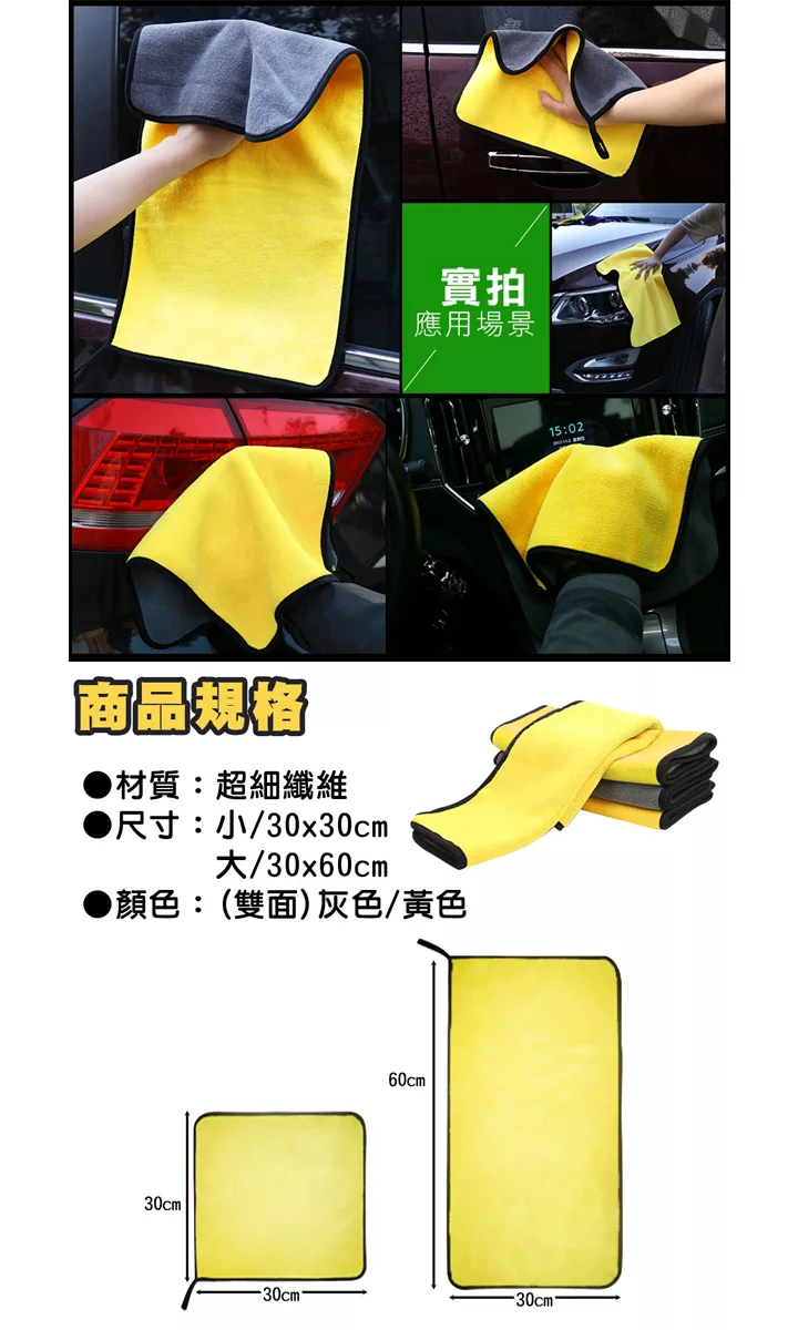 珊瑚絨毛巾 不掉毛強力吸水洗車巾 抹布 (大號/2入)30x60cm 灰黃色