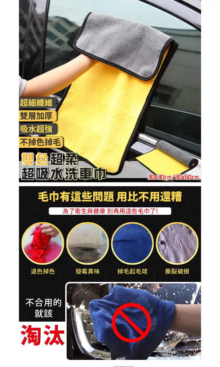 【EZlife】不掉毛雙色超柔超吸水洗車巾- 30*30cm(2入組)
