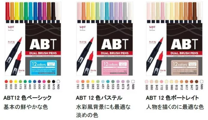Tombow為水性染料雙頭彩色筆“ABT”添加了12種新顏色。更加豐富它。我們將可以發揮更多手繪字體更能創造更多元的藝術等更推出了12色系三款 24色 36色
