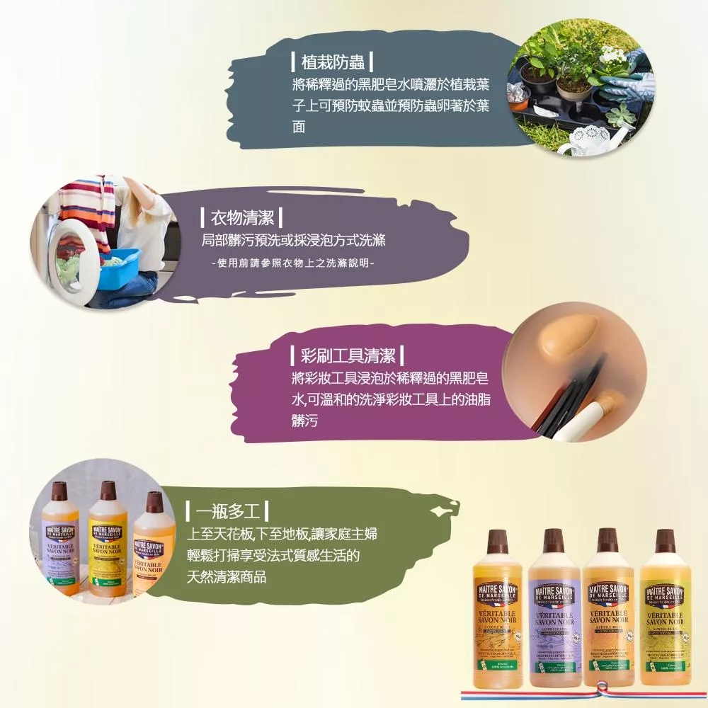 質地溫和深受家庭主婦們喜愛,省去瓶瓶罐罐~居家只要一瓶黑肥皂,就能幫您居家完成裡裡外外的打掃工作