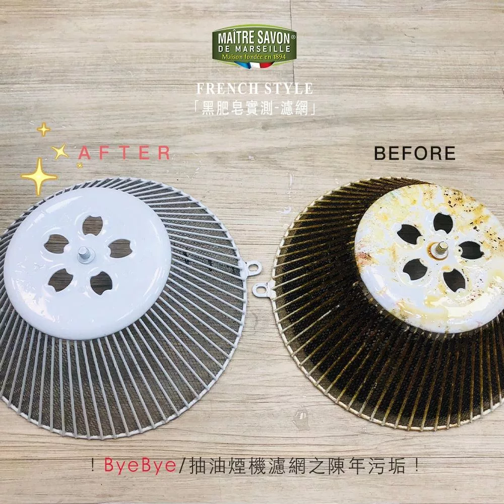 只要將黑肥皂原液使用油膩的污漬處稍作浸泡 如燒焦鍋具、油膩烤箱、烤架、濾網....即可輕鬆洗淨。