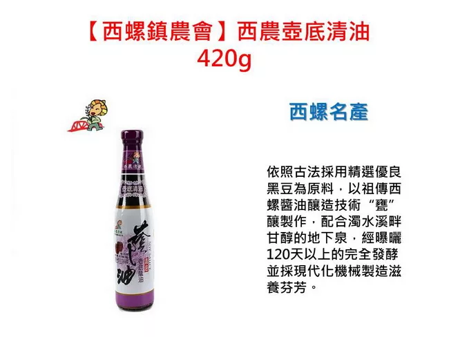 【西螺鎮農會】西農清健壺底清油(420ml/瓶)-台灣農漁會精選