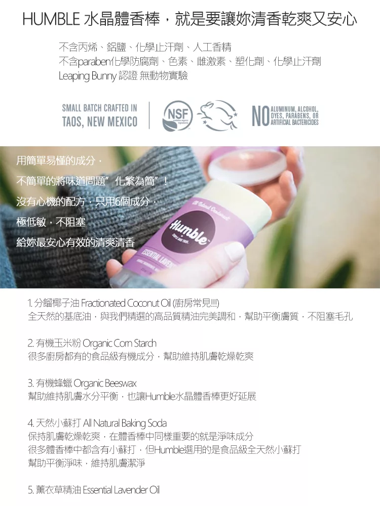 Humble 使用的是令人安心全草本天然成分讓肌膚常保乾爽