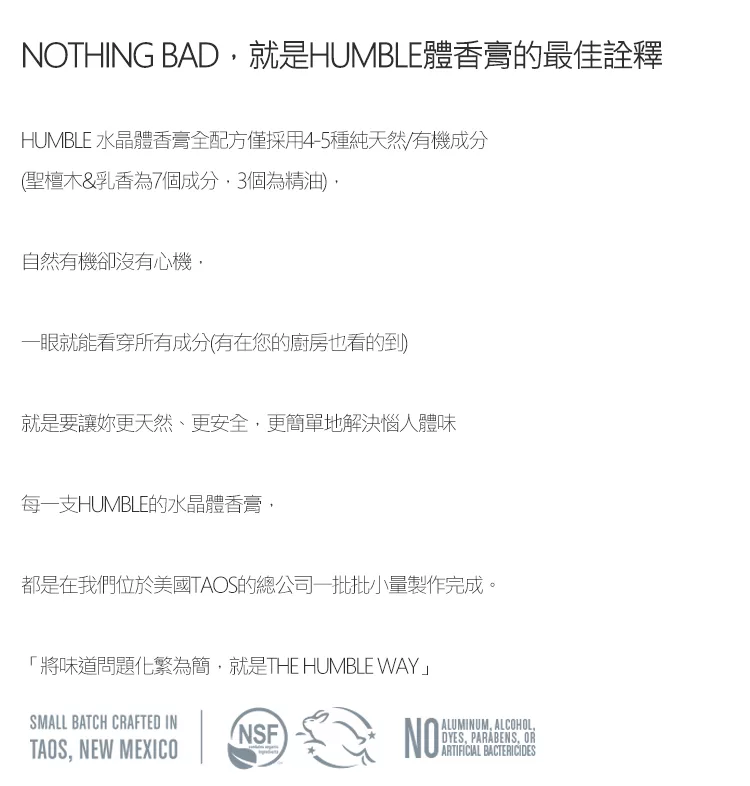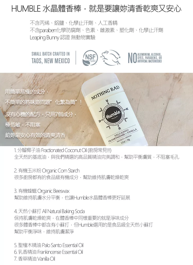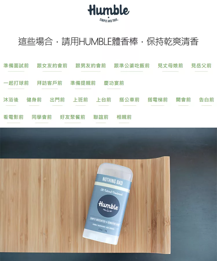 Humble 使用的是令人安心全草本天然成分讓肌膚常保乾爽