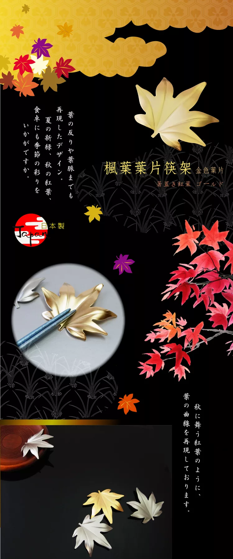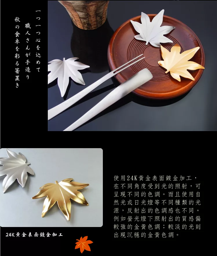 【AnnZen】《日本 Shinko》日本製 筷架系列- 楓葉葉片筷架 (金色葉片 )