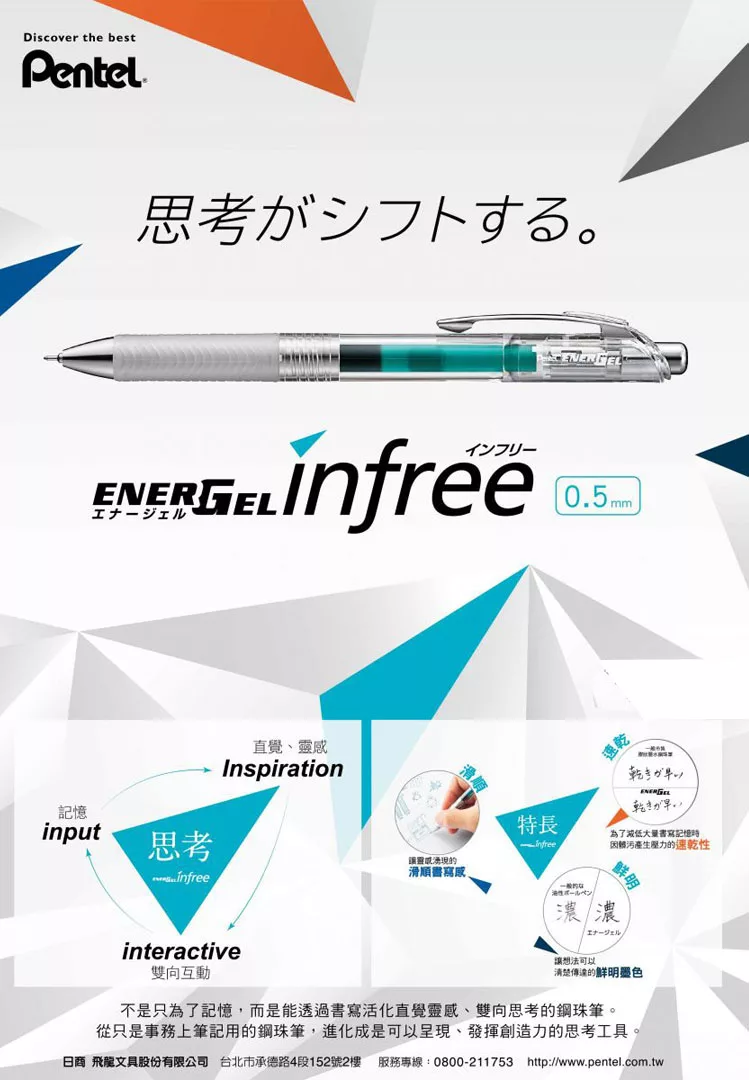 (1筆2芯)PENTEL ENERGEL infree極速鋼珠筆0.5 黑